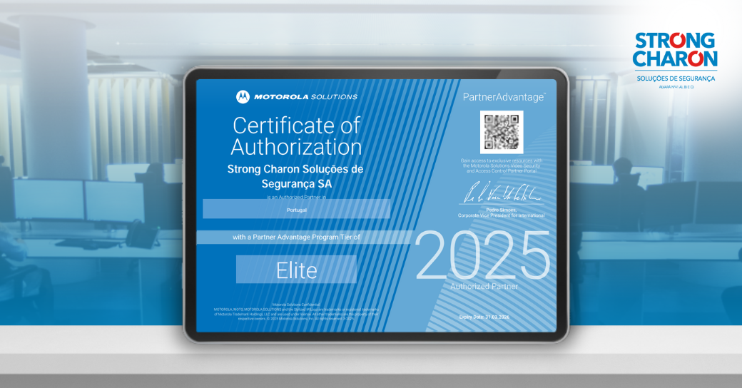 Temos o prazer de partilhar que a STRONG CHARON recebeu, recentemente, o Certificado de Parceiro ELITE da Avigilon (Motorola Solutions).